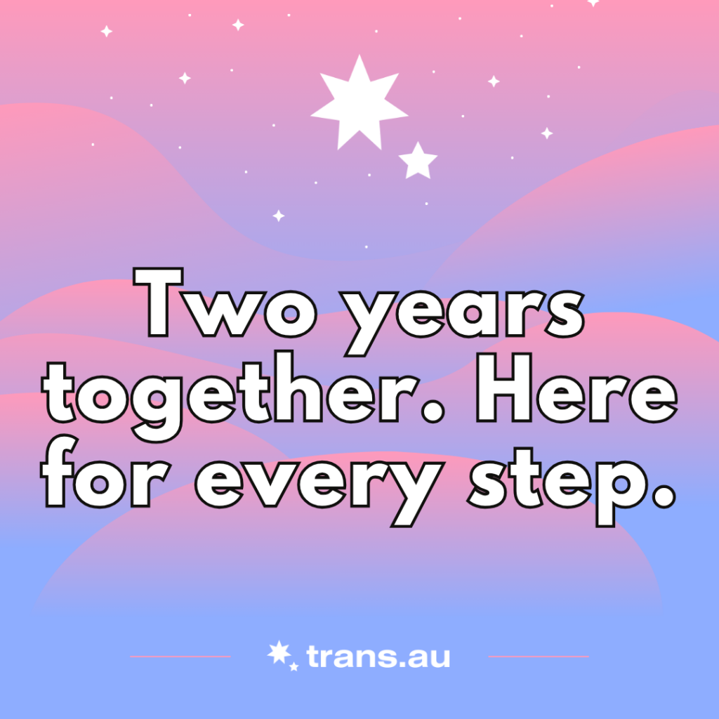 I can hardly believe that it has been 2 years since I launched Trans.au with a simple but urgent vision: to make it easier for trans and gender diverse people in Australia to find the services, support, and community they deserve.